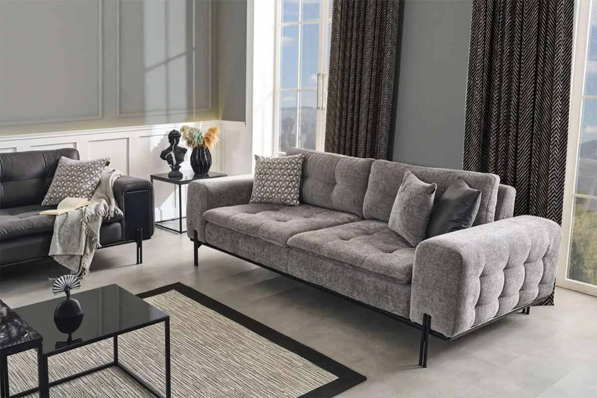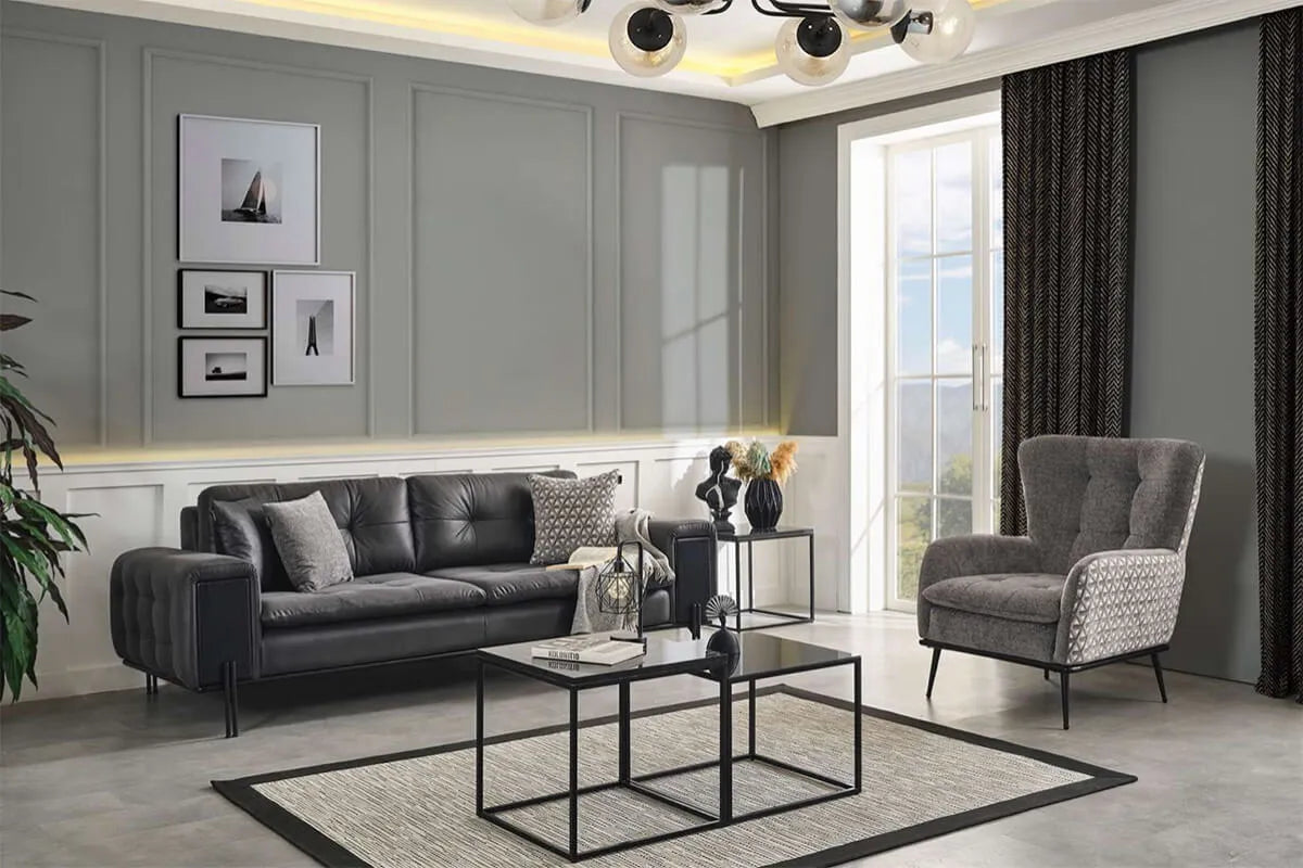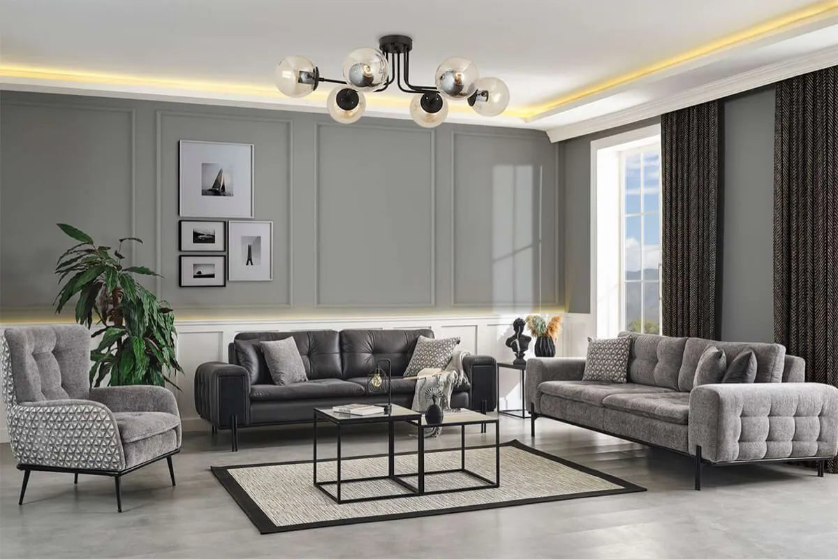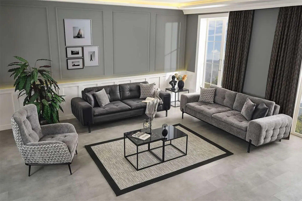 The Anka sofa set is an elegant and comfortable choice that will harmonize with any room in your home. Whether you're enjoying a pleasant movie night with your family or having a chat with friends, the Anka sofa set is designed for your comfort. This sofa set stands out with its modern design and high-quality materials. Its stylish fabric and unique design add a striking touch to your room. The Anka sofa set boasts a chic and minimalist appearance. Comfortable and spacious seating areas, along with high-quality cushions, make sitting all day long a comfortable experience. Not only for home use but also suitable for your office, the Anka sofa set provides a comfortable seating area in your workspace. Whether at home or in the office, with the Anka sofa set, you can experience style and comfort together. Designed with the quality and elegance of Ider Furniture, the Anka sofa set is tailored to provide you with the most comfortable moments of your life.